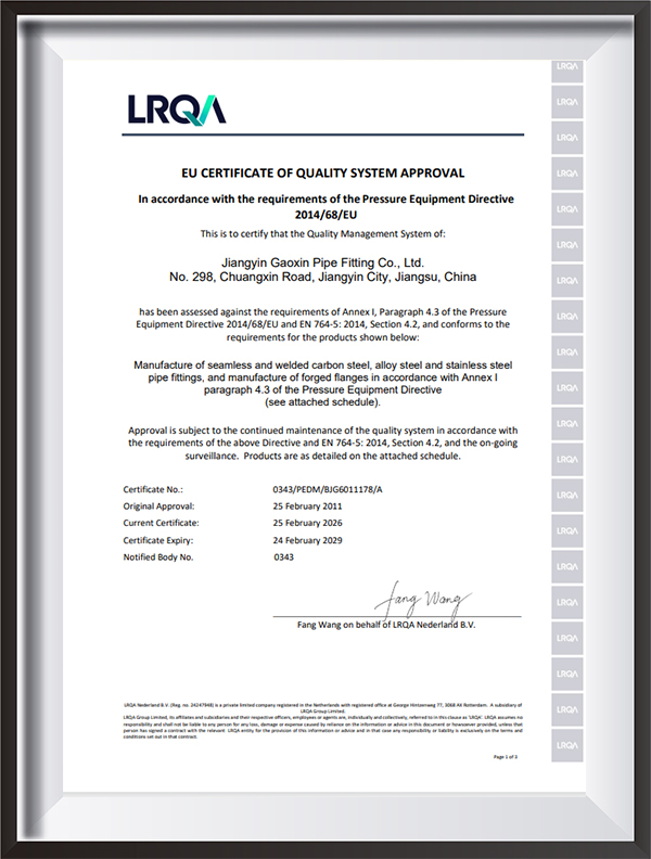 | Sijil | PED, AD2000, EAC, ABS, BV, DNV, NORSOK M650, ISO9001, ISO14001, ISO45001, dsb. |