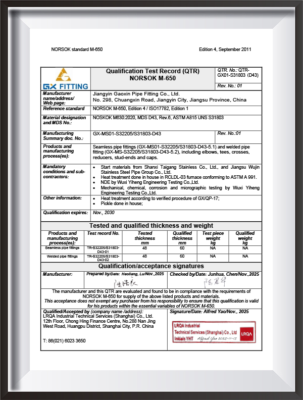 Syarikat kami ialah Pengeluar Kelengkapan Bahan Khas profesional. Rangkaian produk kami meliputi kimpalan punggung, kimpalan soket dan kelengkapan paip berulir, termasuk bebibir dan bahagian bukan standard yang disesuaikan. Produk ini digunakan secara meluas dalam industri seperti minyak & gas, pemprosesan kimia, penjanaan kuasa, pembinaan kapal, pembuatan kertas, metalurgi, farmaseutikal dan pemprosesan makanan. Kami mengeluarkan mengikut piawaian seperti ASME, EN, JIS, DIN, ANSI, GOST, MSS, GB/T,HG, DL, SH, SY, dan mempunyai rangkaian lengkap peralatan pemeriksaan, sistem kawalan kualiti yang ketat, dan pelbagai pensijilan(PED,AD2000,EAC, ABS,BV, DNV50,NORSOK M6 ISO9001, ISO14001, ISO45001, dsb.), menjadikan kami peneraju dalam industri.