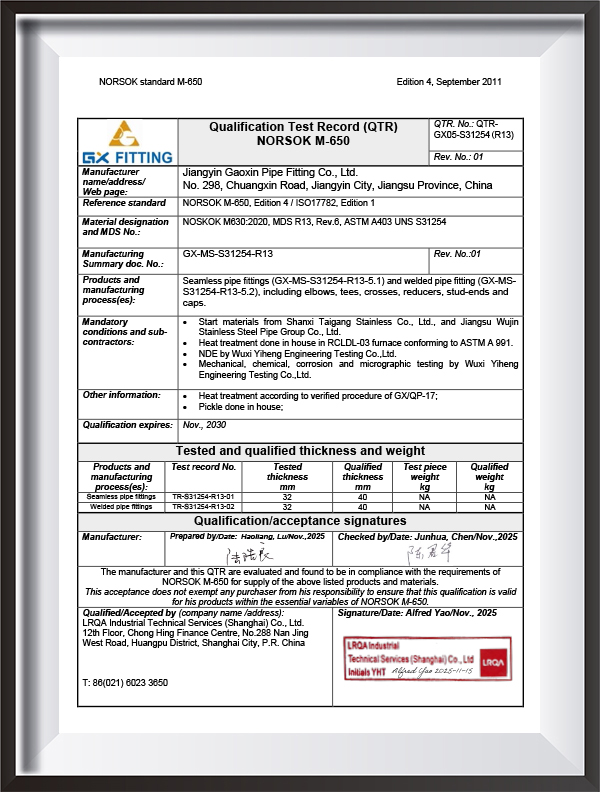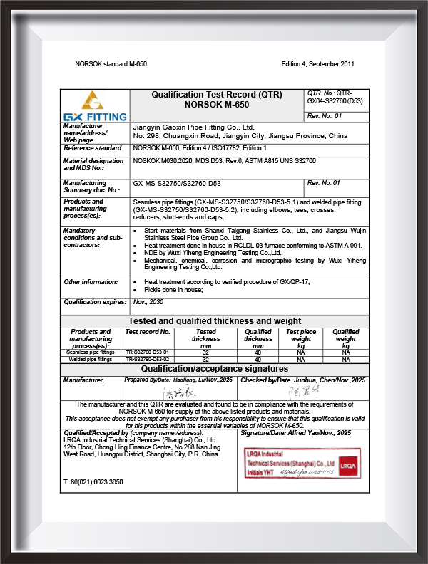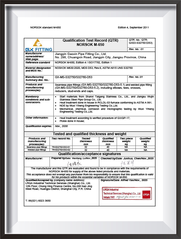 PED, AD2000, EAC, ABS, BV, DNV, NORSOK M650, ISO9001, ISO14001, ISO45001, dsb.